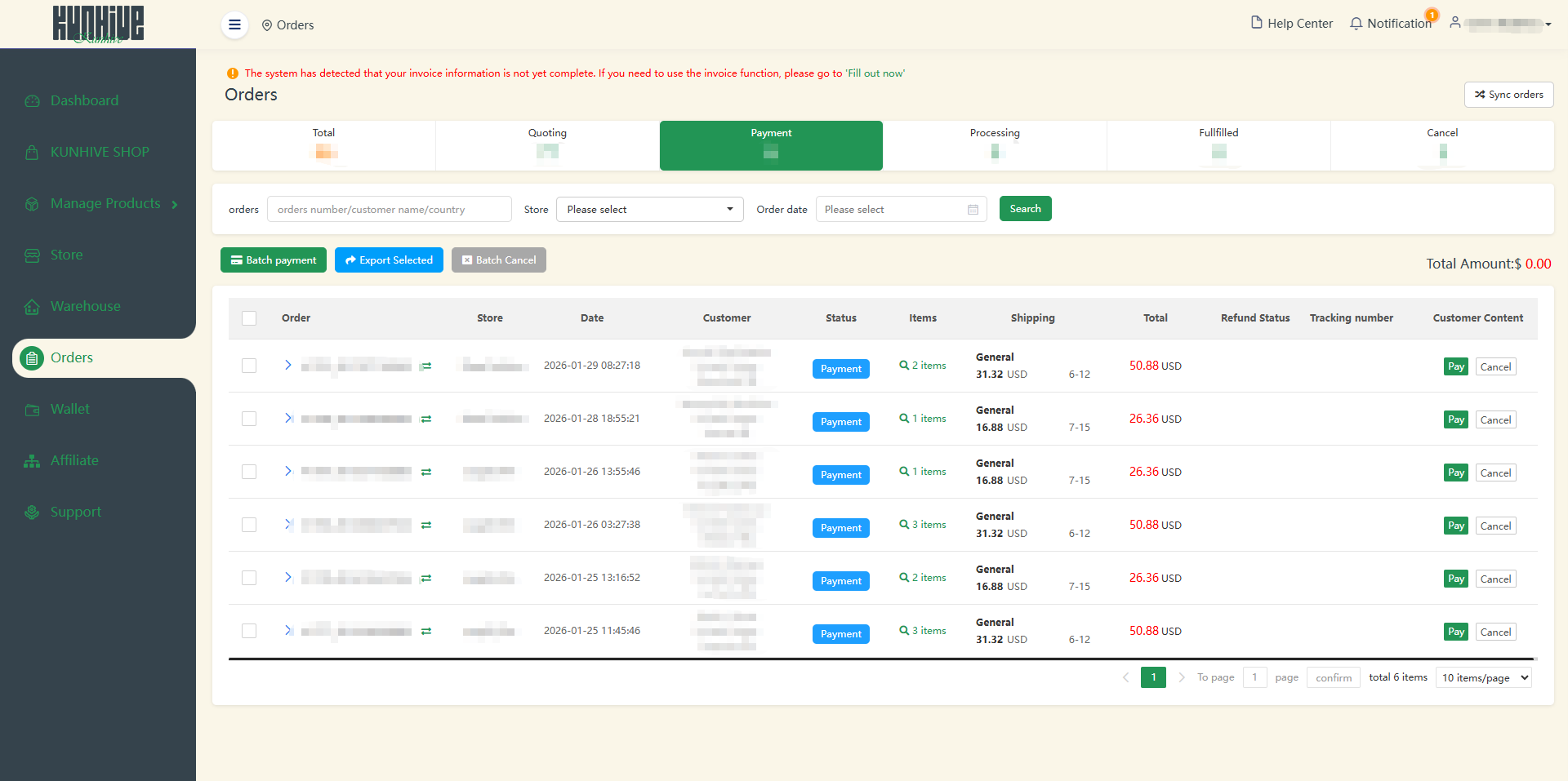Once you log in to your KUNHIVE account and establish the link between your store and our platform, you can start synchronizing your orders. This seamless process will significantly enhance the efficiency of your eCommerce operations.